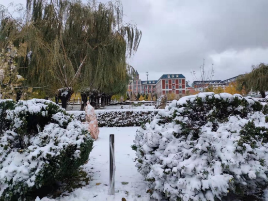 初雪降临的枫叶校园