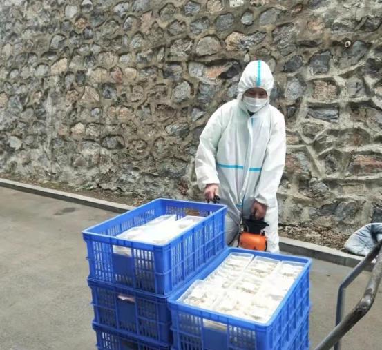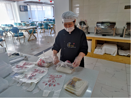 暂时性取消堂食,以外带形式单独就餐,避免大规模聚集。据统计,食堂每天外送的餐食高达9000多份,食堂员工们用心准备,学院教师、订餐平台工作人员以及舍务老师们努力配送,将美味可口的饭菜送到师生手中。