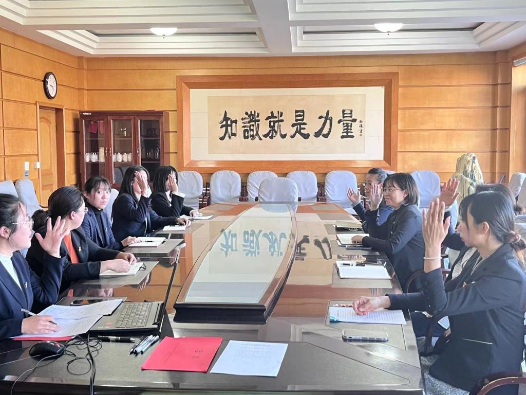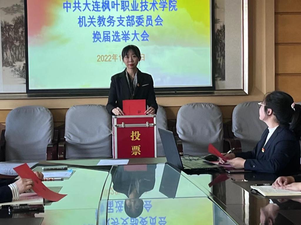 喜迎二十大,奋进新征程。正值二十大召开之际,为进一步加强党组织建设,切实发挥党组织的战斗堡垒作用,经学院党委批准,机关教务党支部于10月19日15:00在1号教学楼二楼会议室召开支部换届大会。应到有选举权党员10名,实际出勤8名,预备党员1名,大会由隋琛珂同志主持。