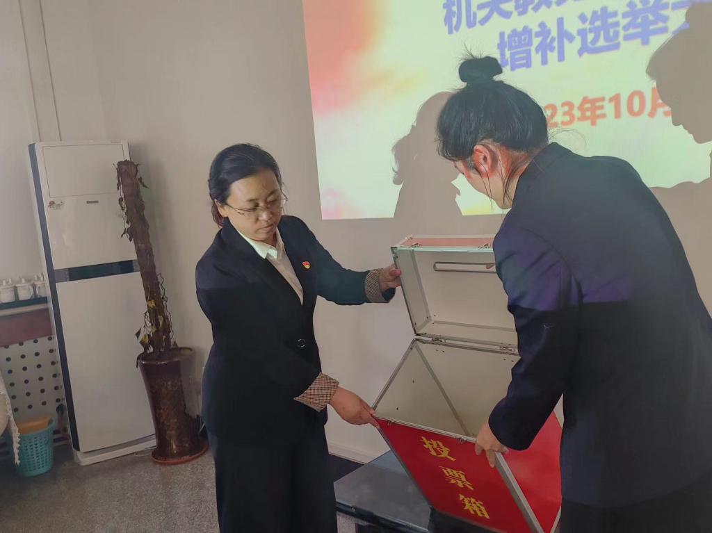 大会严格按照党章规定的选举办法和选举程序,坚持公平、公正、公开的原则,以无记名投票、等额选举的方式进行。会上,按照补选程序,通过了监票人名单,宣布计票人名单。大会经无记名投票和等额选举的方式,监票人和计票人当场清点统计票数。根据计票结果,张晓洁、徐辉两名同志当选为机关教务党支部新一届委员。