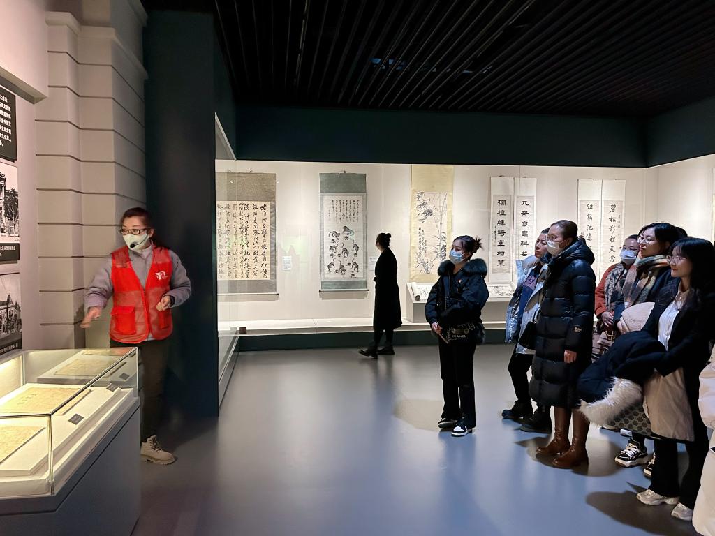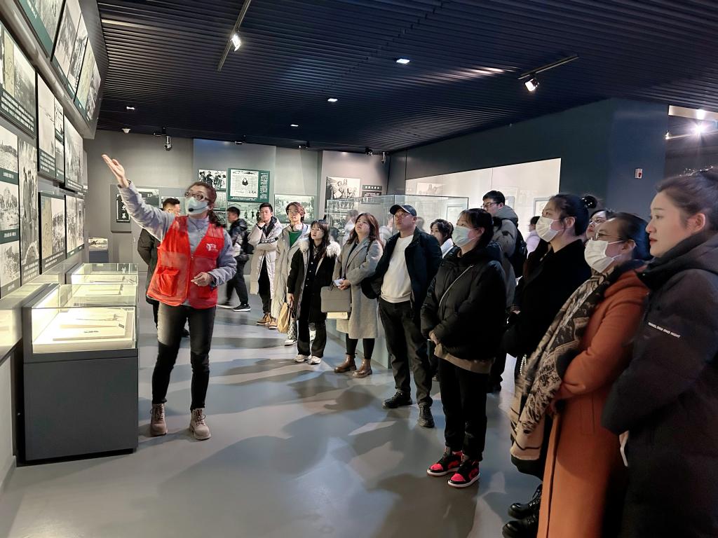 认真聆听讲解员讲解