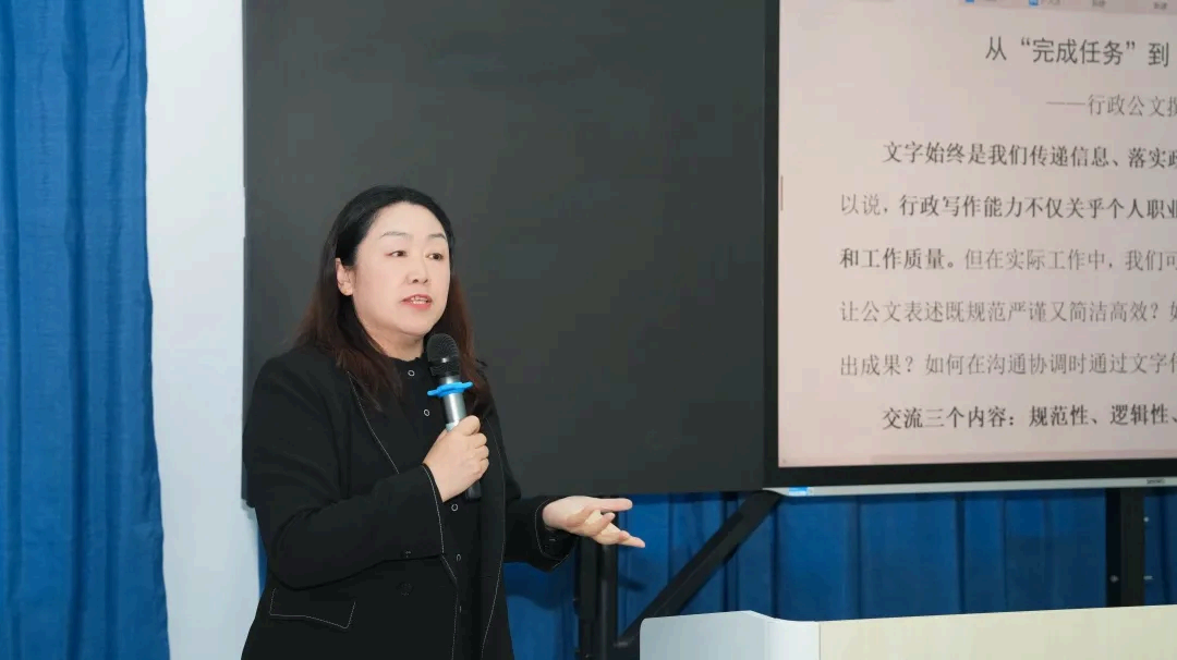副院长张冬冬进行的公文写作案例分析将培训推向高潮。张院长从行政公文语言的规范性切入,结合实际案例,深入剖析了行文内在逻辑的构建和材料撰写的要点。她还分享了自己多年积累的工作心得,使教职工们对公文写作的标准和要求有了全新的理解。为了让大家更好地掌握所学内容,张院长布置了实操作业,要求大家通过总结过往工作,逐步提升个人公文写作能力,实现从“完成任务”到“精准表达”的进阶。