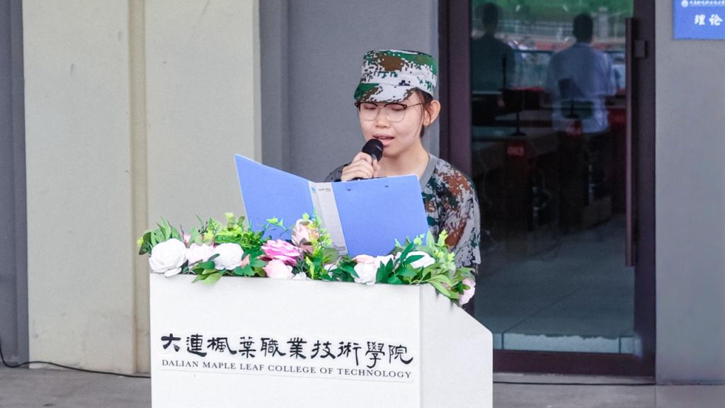 参训新生于晓杨、杨韵楚两名同学代表全体参训新生发言,她们表达了对军训的期待,“军训是我们进入大学的第一课,也是挑战自我的绝佳机会。我们会以积极的心态、饱满的热情投入训练,不怕困难,磨炼意志,努力成为更好的自己!”两名同学的发言,说出了全体新生的心声,赢得了台下阵阵掌声。