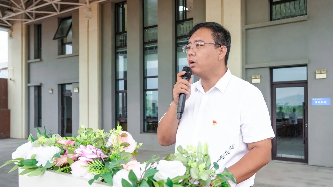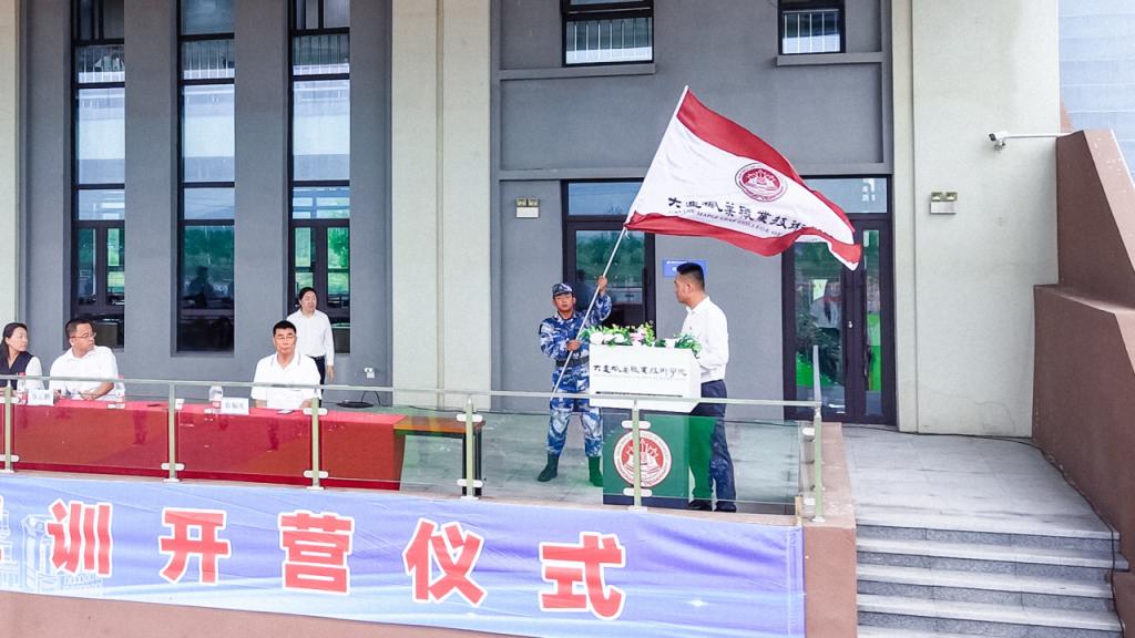 党委副书记金晓晖、副校长张冬冬庄重地将校旗授予双校区总教官。这面校旗不仅承载着学校的荣誉,更寄托着对全体参训同学的期望,希望同学们能传承军人作风,在军训中砥砺前行。