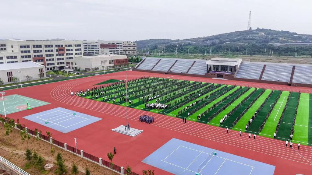 仪式第一项升国旗、奏国歌。雄壮激昂的国歌声响彻双校区运动场,全体师生面向国旗,庄严肃立,行注目礼。那一刻,每个人心中都涌动着强烈的民族自豪感和爱国情怀,这激昂的旋律也为本次军训拉开了热血的序幕。