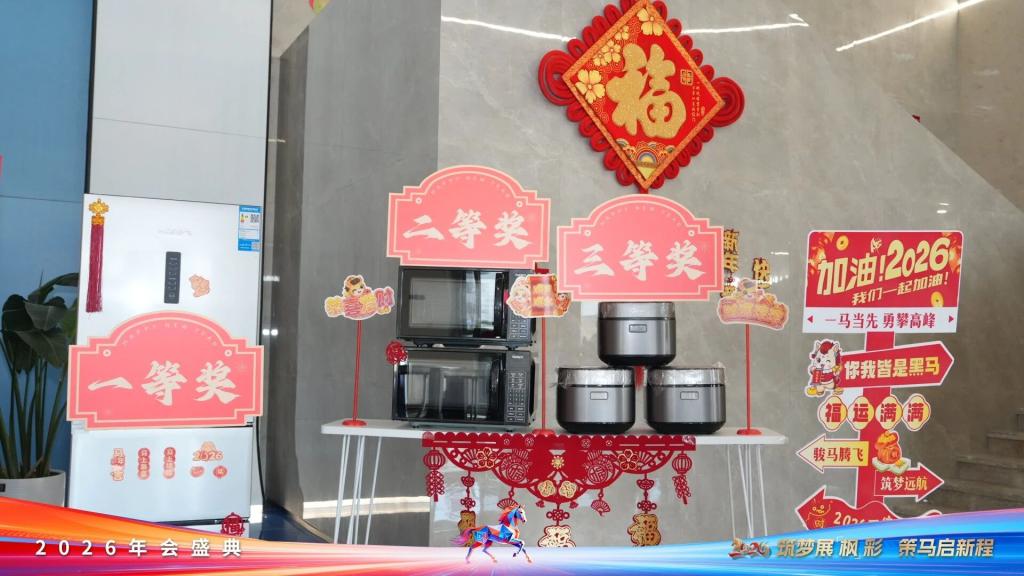 节目表演间隙,由AI助力的年会抽奖环节同步惊喜开启。三等奖3名获奖者由继续教育与国际合作交流学院王忠泽院长颁奖并合影留念;二等奖2名获奖者由集团总经理、学院副校长艾立斯颁奖并合影留念;一等奖揭晓后,由杨萍董事长为获奖者颁奖并合影留念。一份份精心准备的奖品,承载着学院对大家新一年的美好期许。