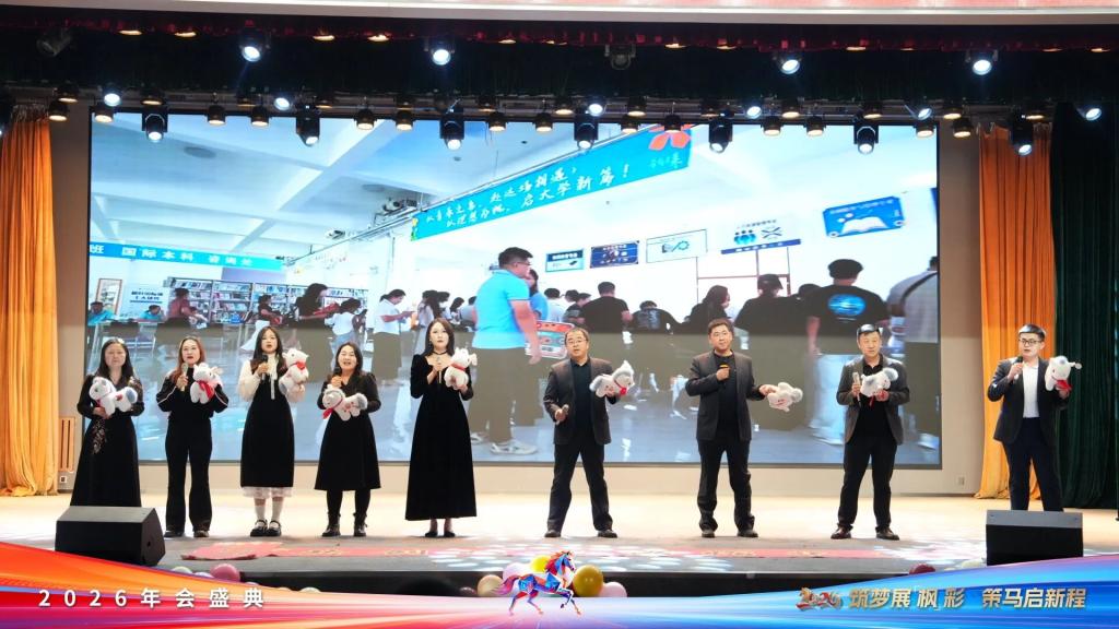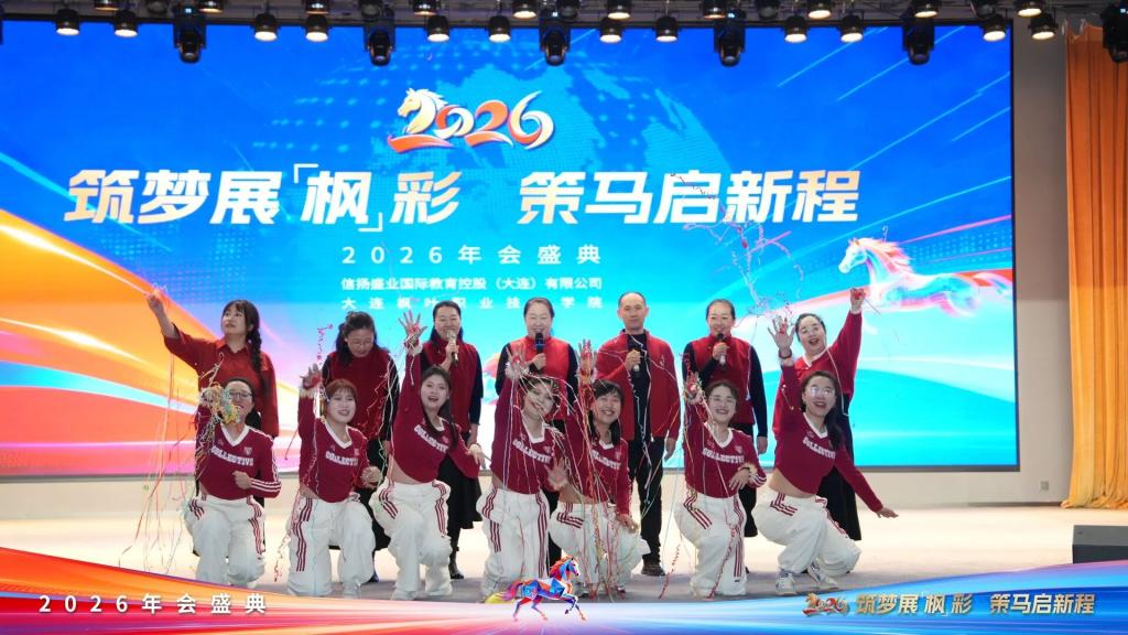 2026年1月8日,信扬盛业国际教育控股(大连)有限公司“筑梦展‘枫’彩,策马启新程”2026年年会盛典在七顶山校区报告厅隆重启幕。集团董事长杨萍、学院党委书记魏晓峰、校长杨捷携领导班子与全体教职工欢聚一堂,回望奋斗征程,共绘未来蓝图,于欢声笑语中凝聚奋进合力。