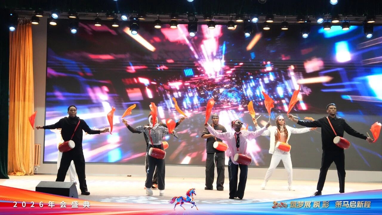 杨捷校长登场献唱《中国人》,雄浑歌声响彻全场,赢得满堂喝彩;后续,歌舞串烧热力四射,民族舞蹈韵味悠长,古典吟诵意蕴深远,幽默小品笑中含思,精彩纷呈。