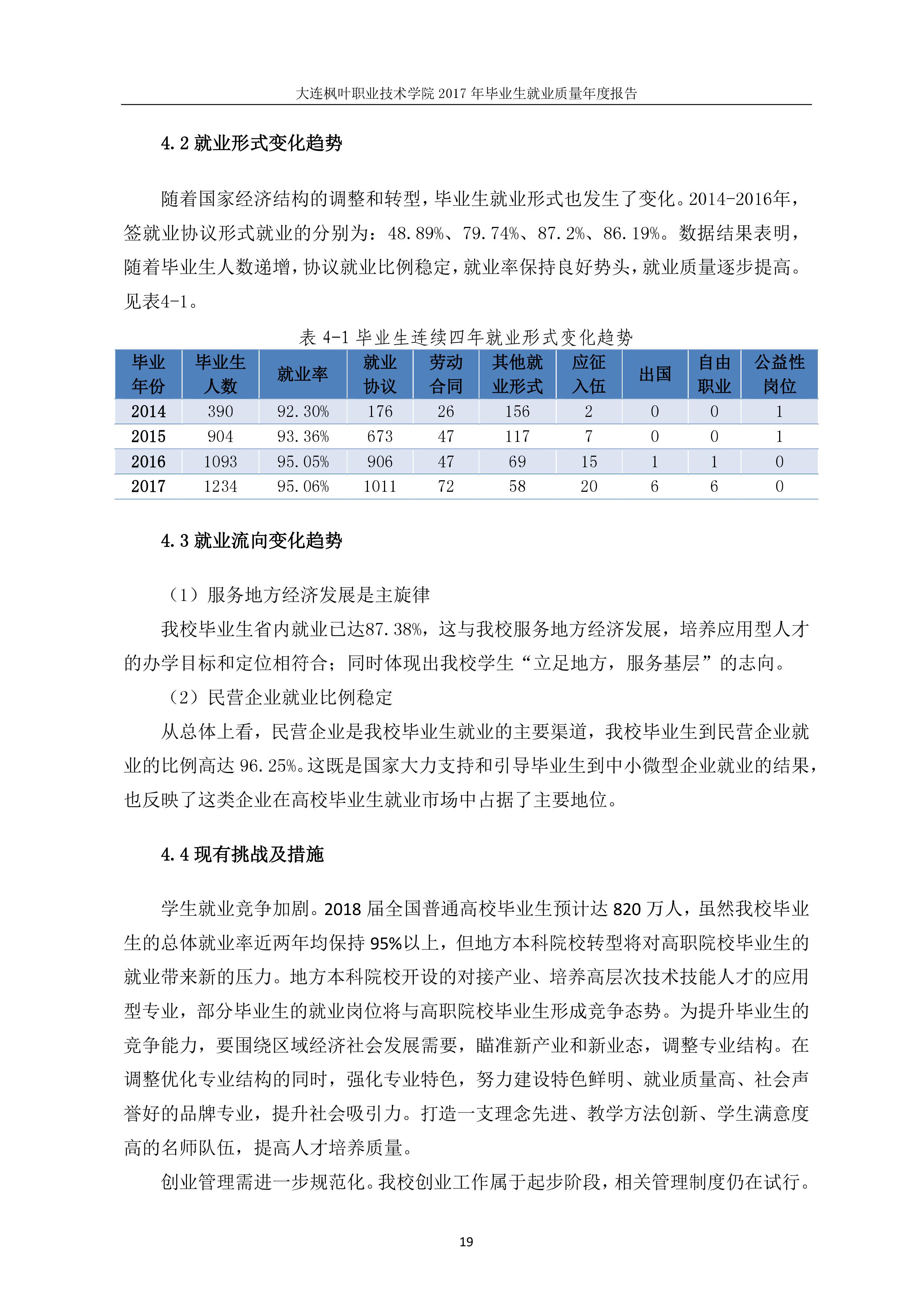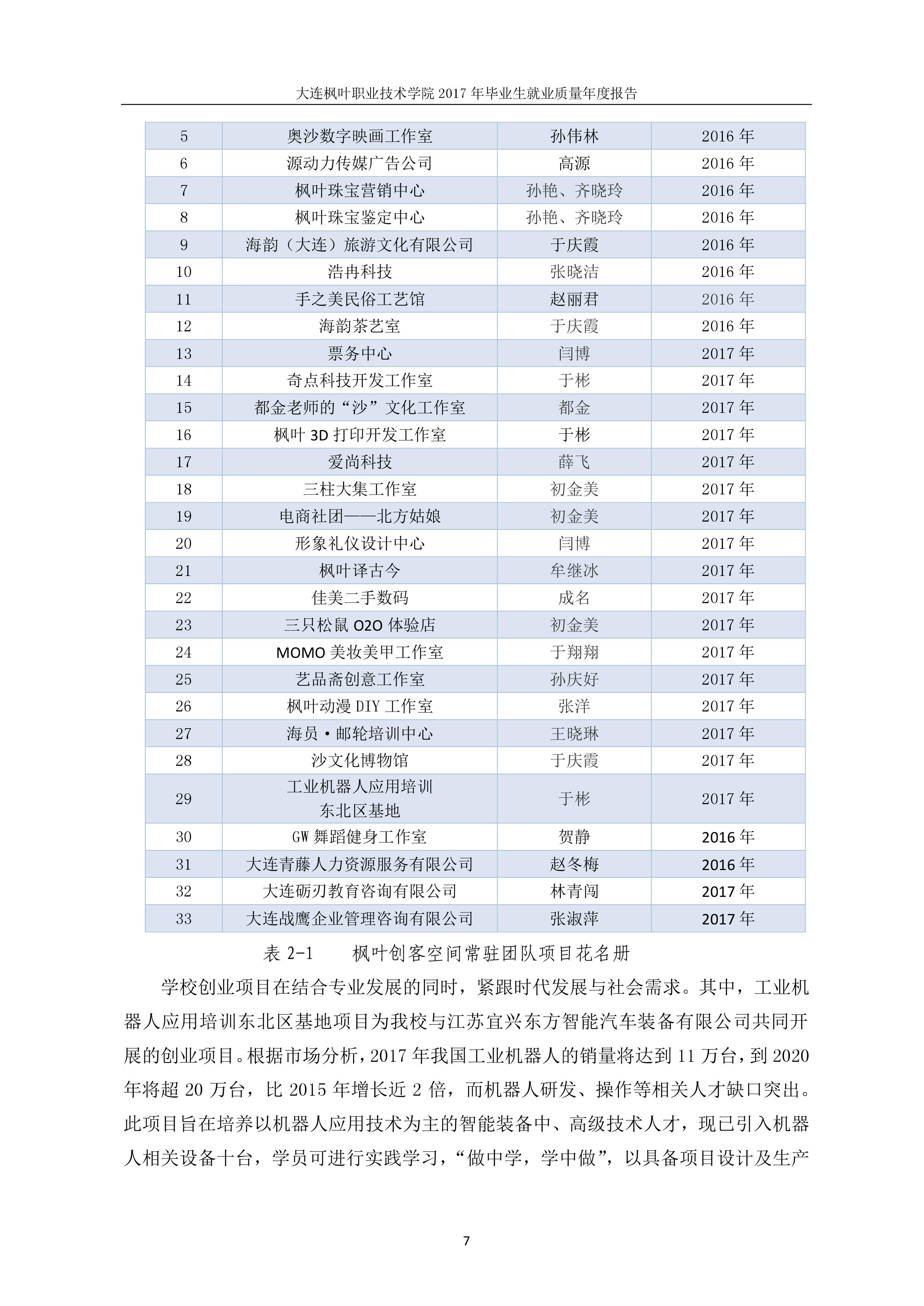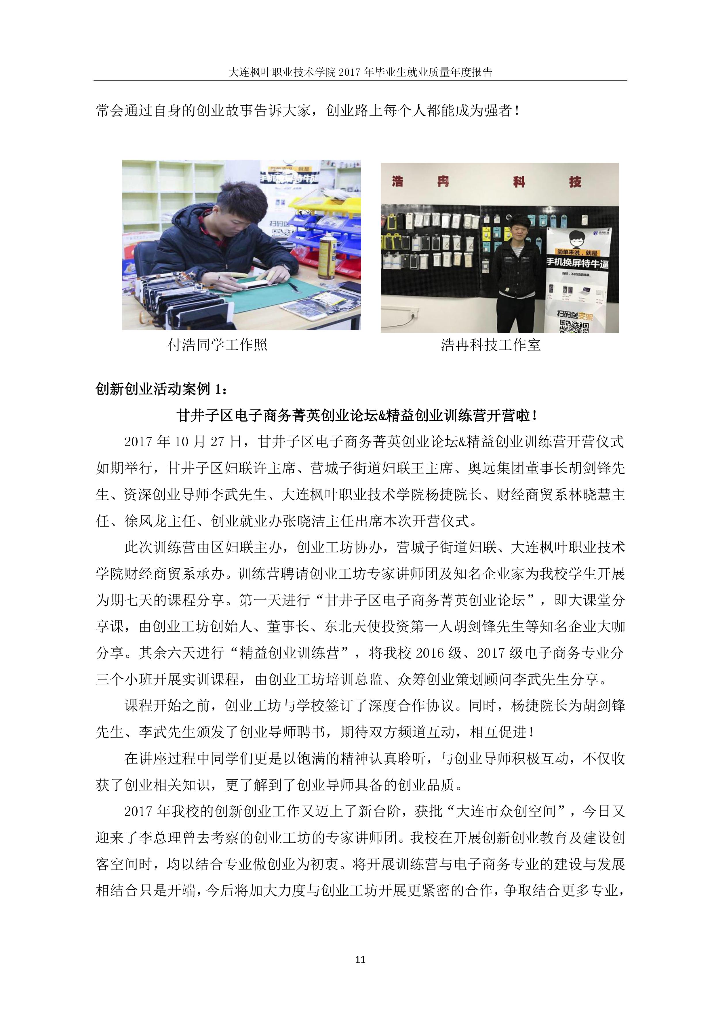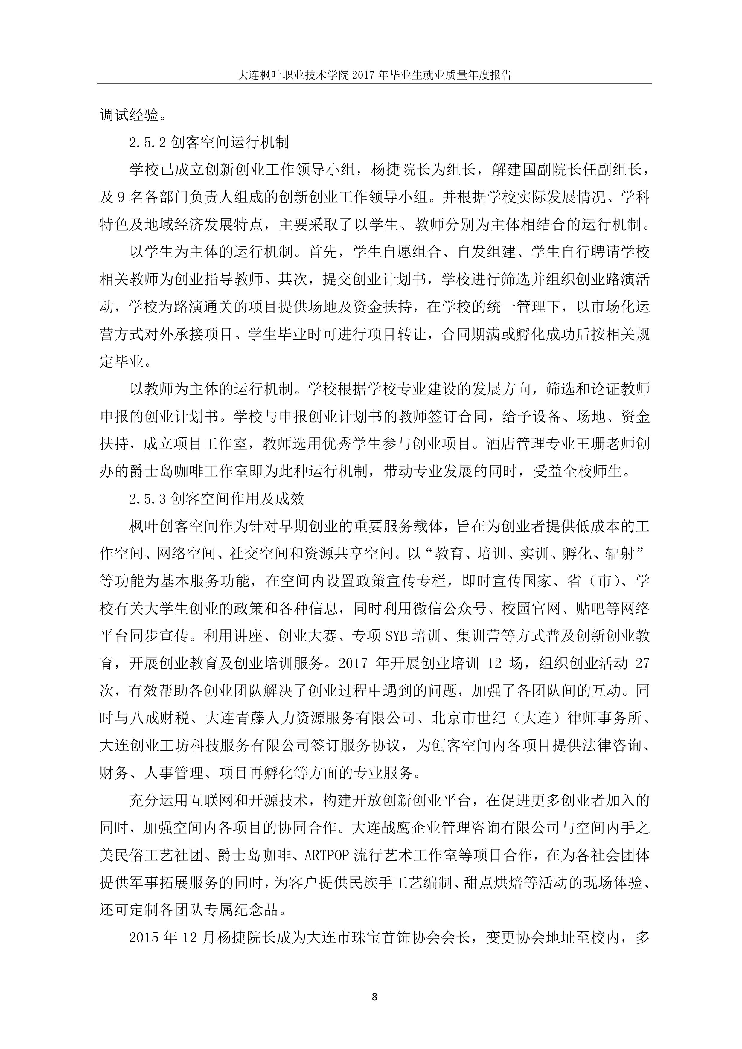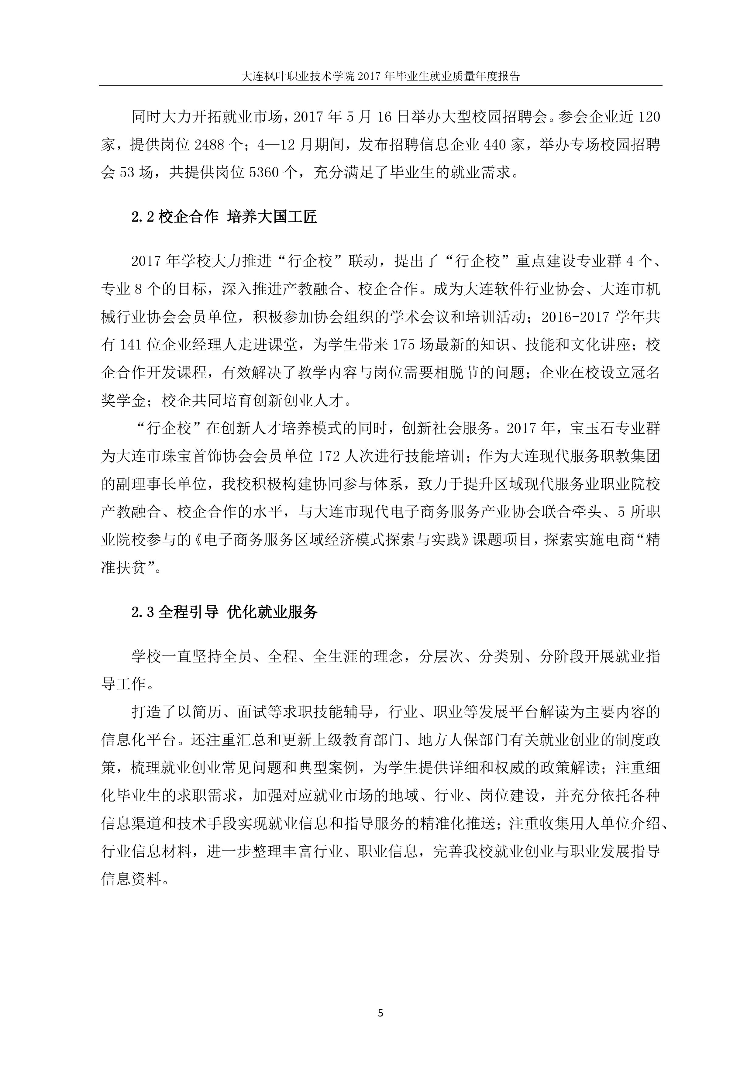 大连枫叶职业技术学院2017年毕业生就业质量年度报告