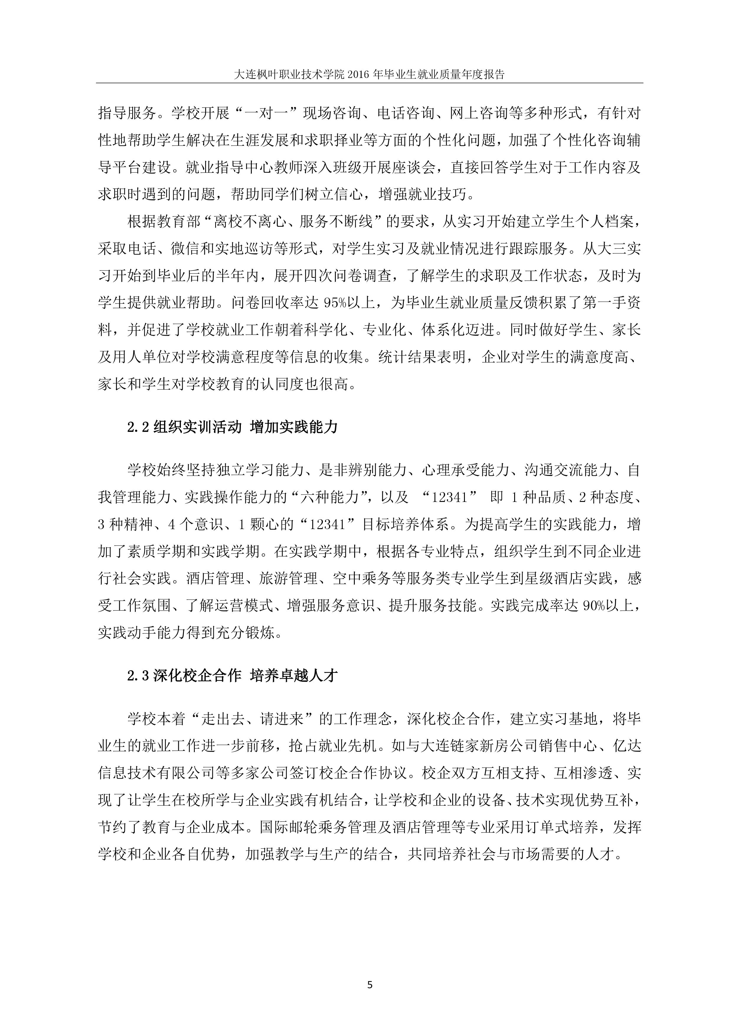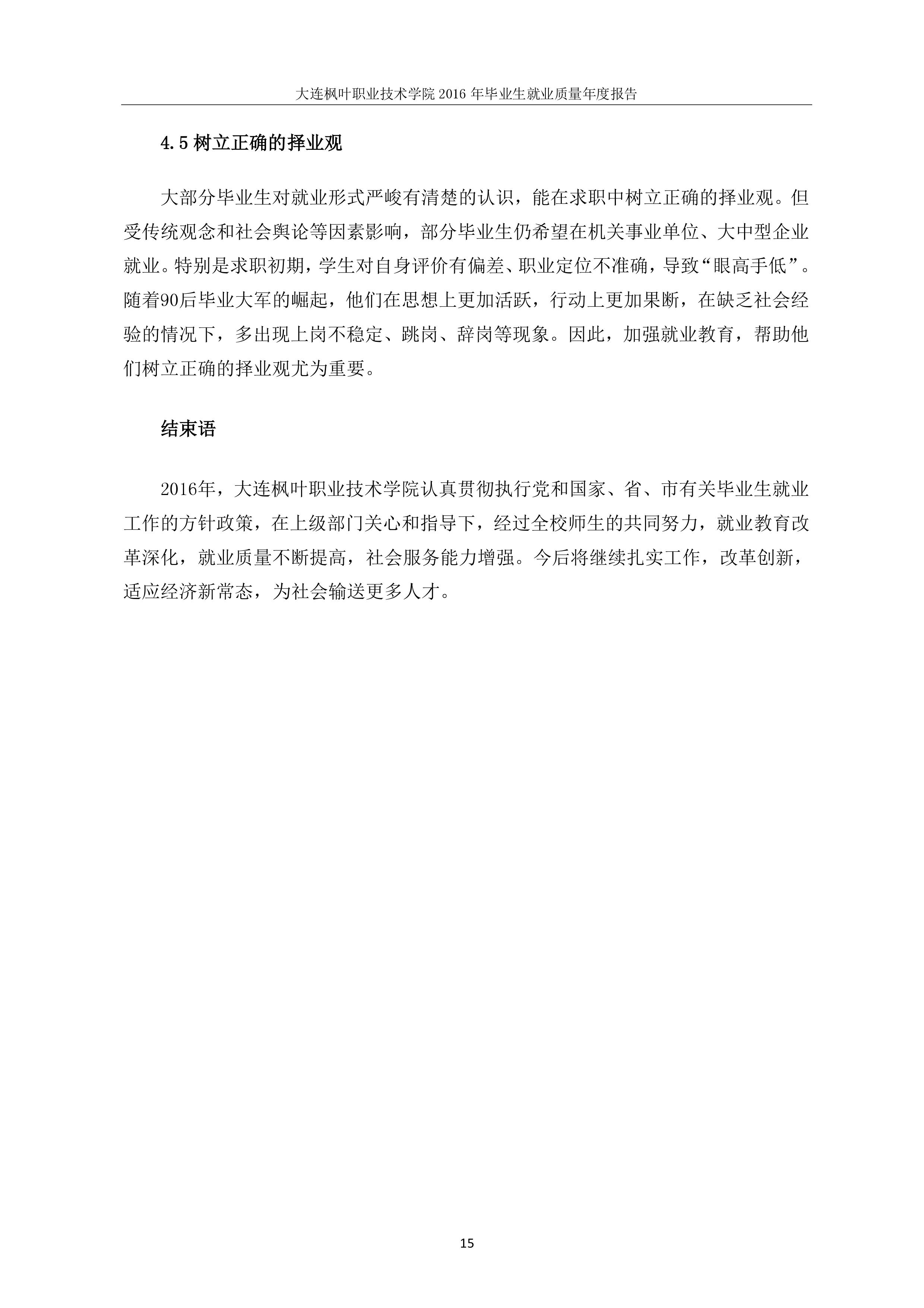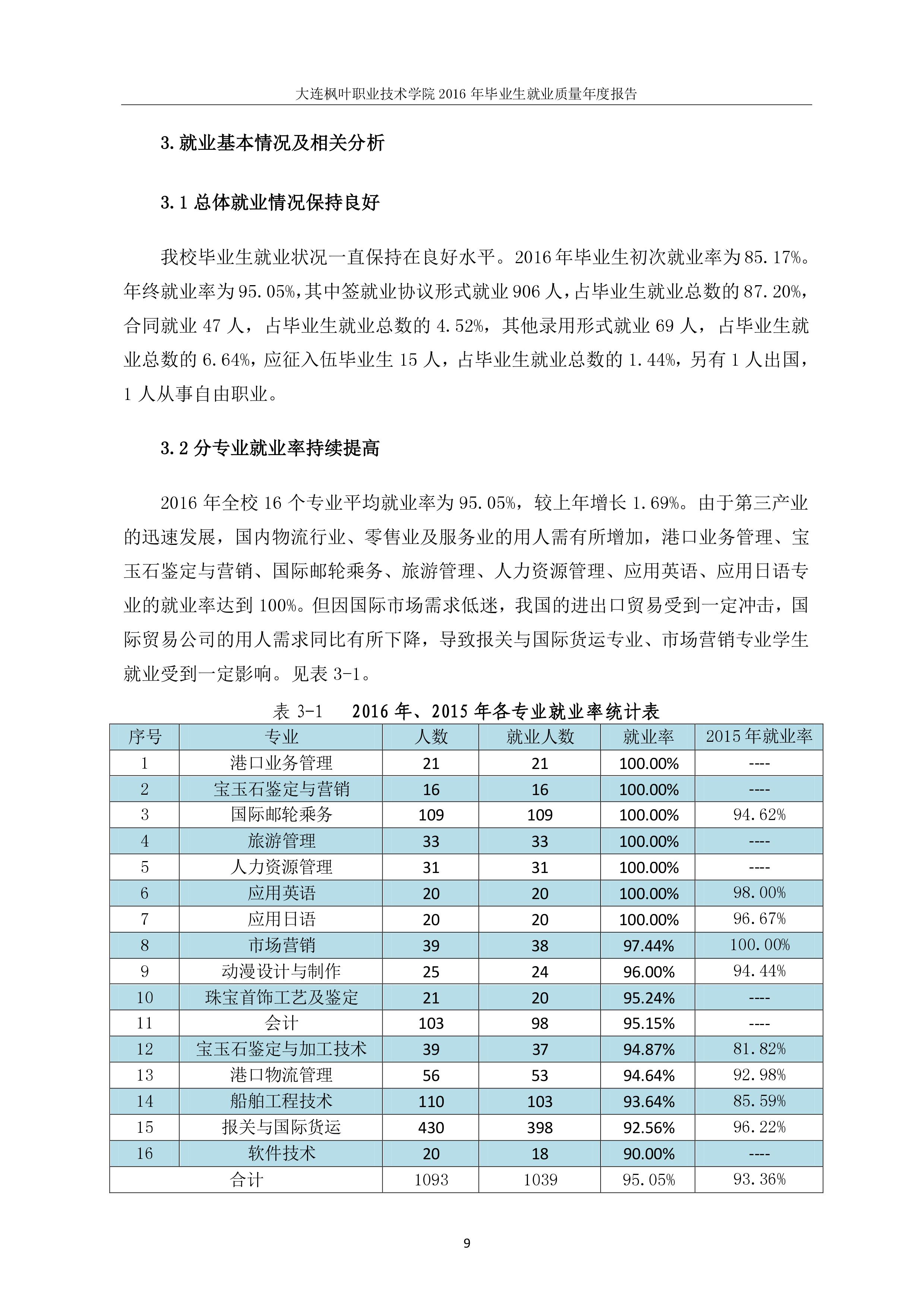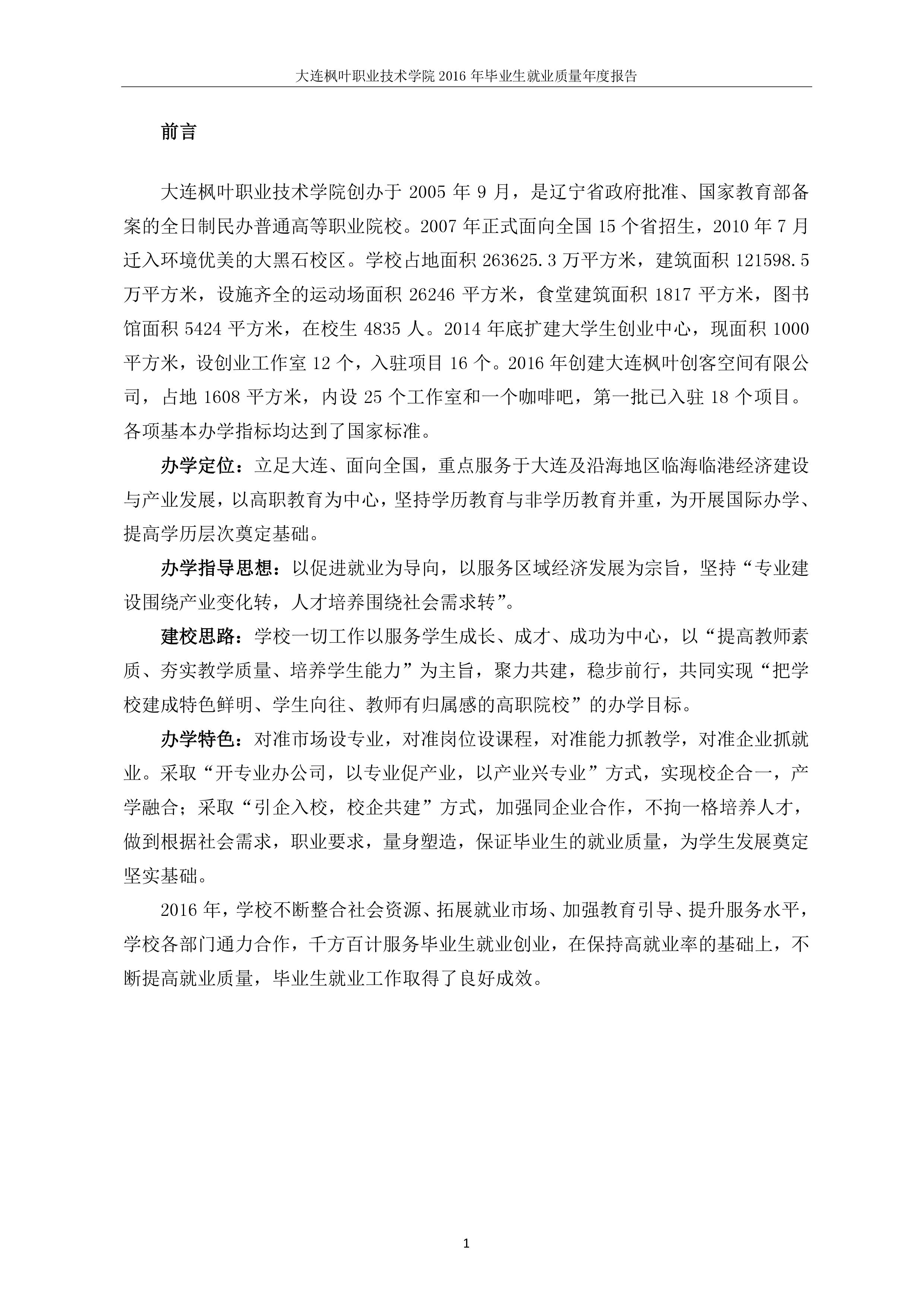 大连枫叶职业技术学院2016年毕业生就业质量年度报告