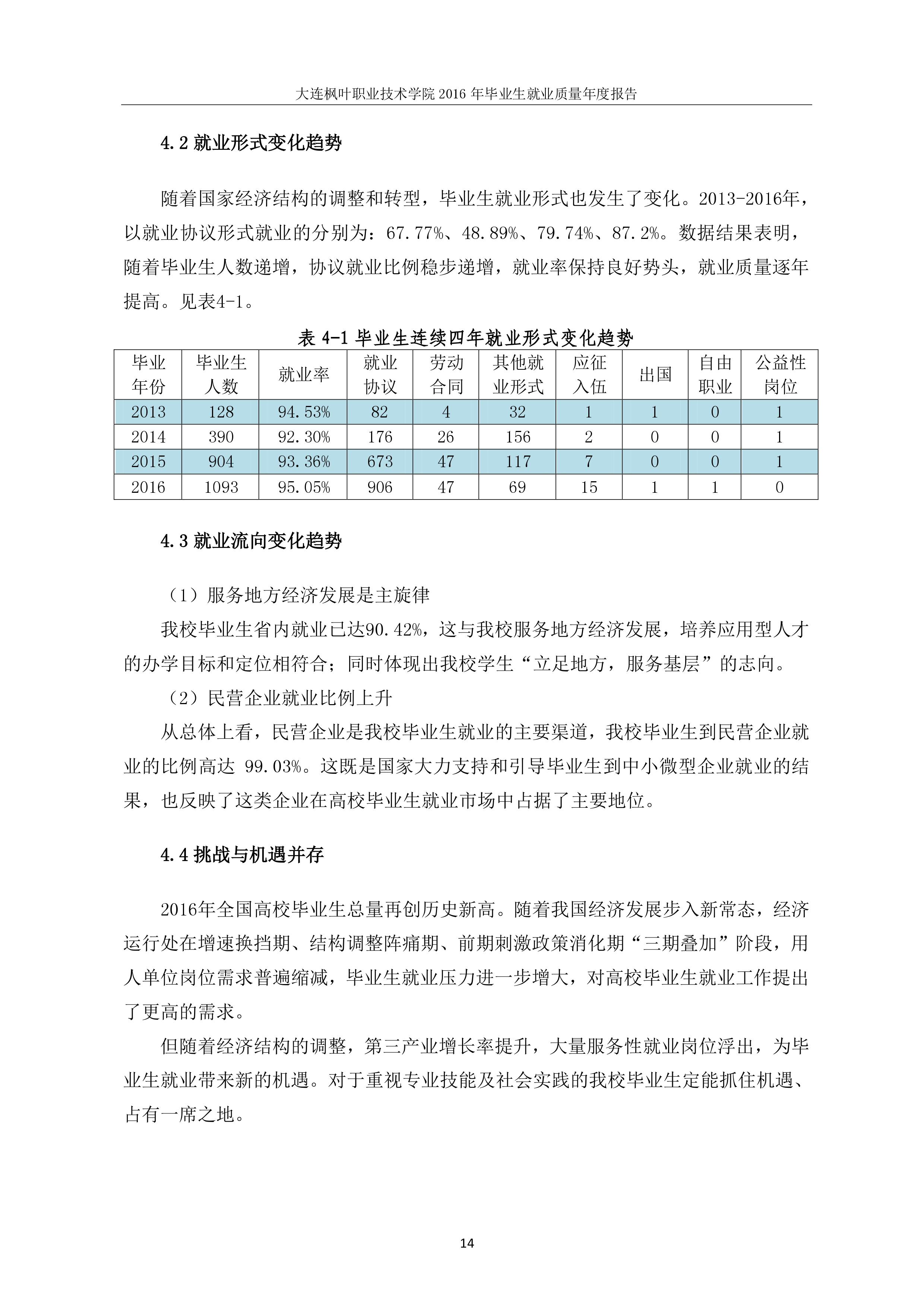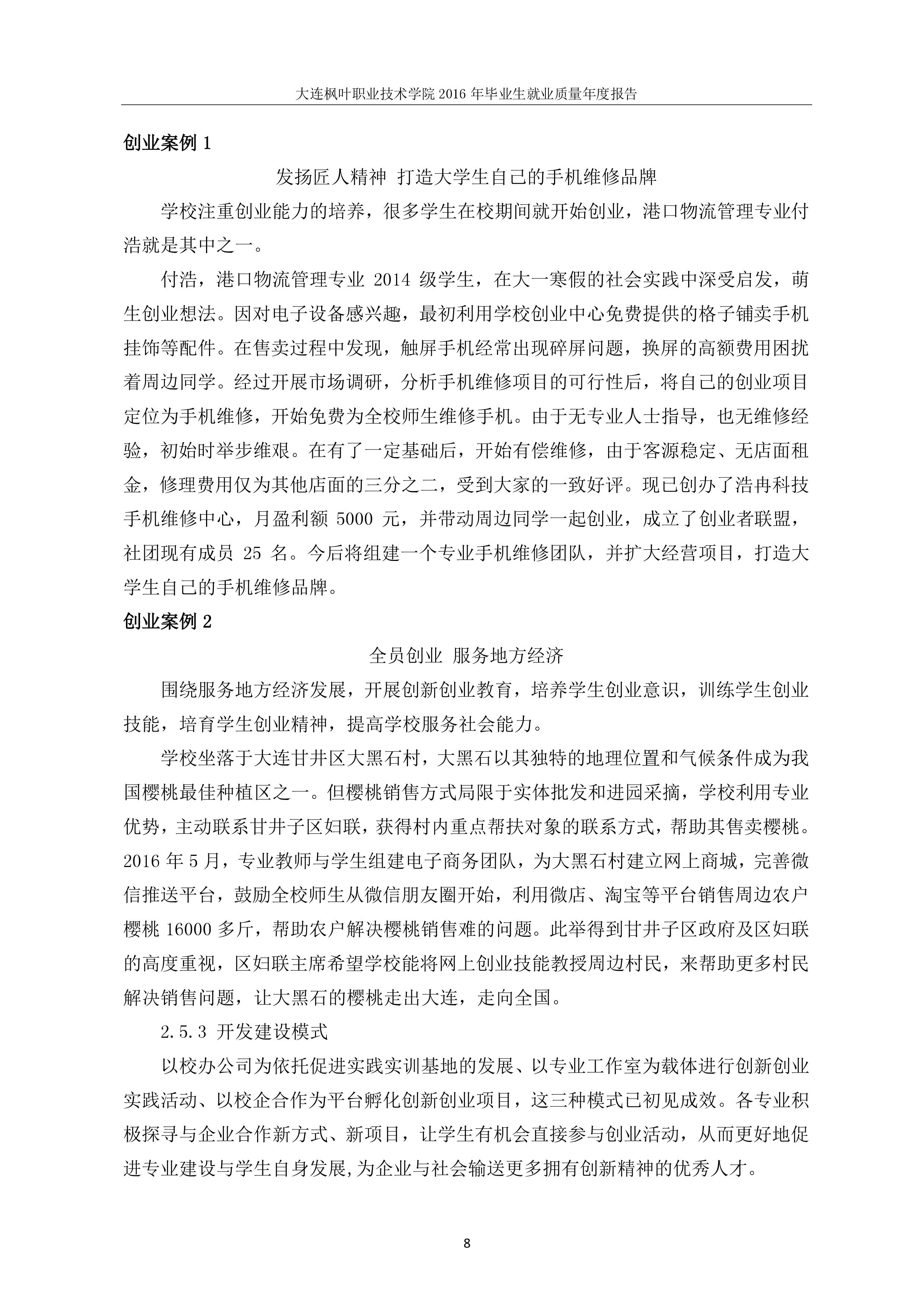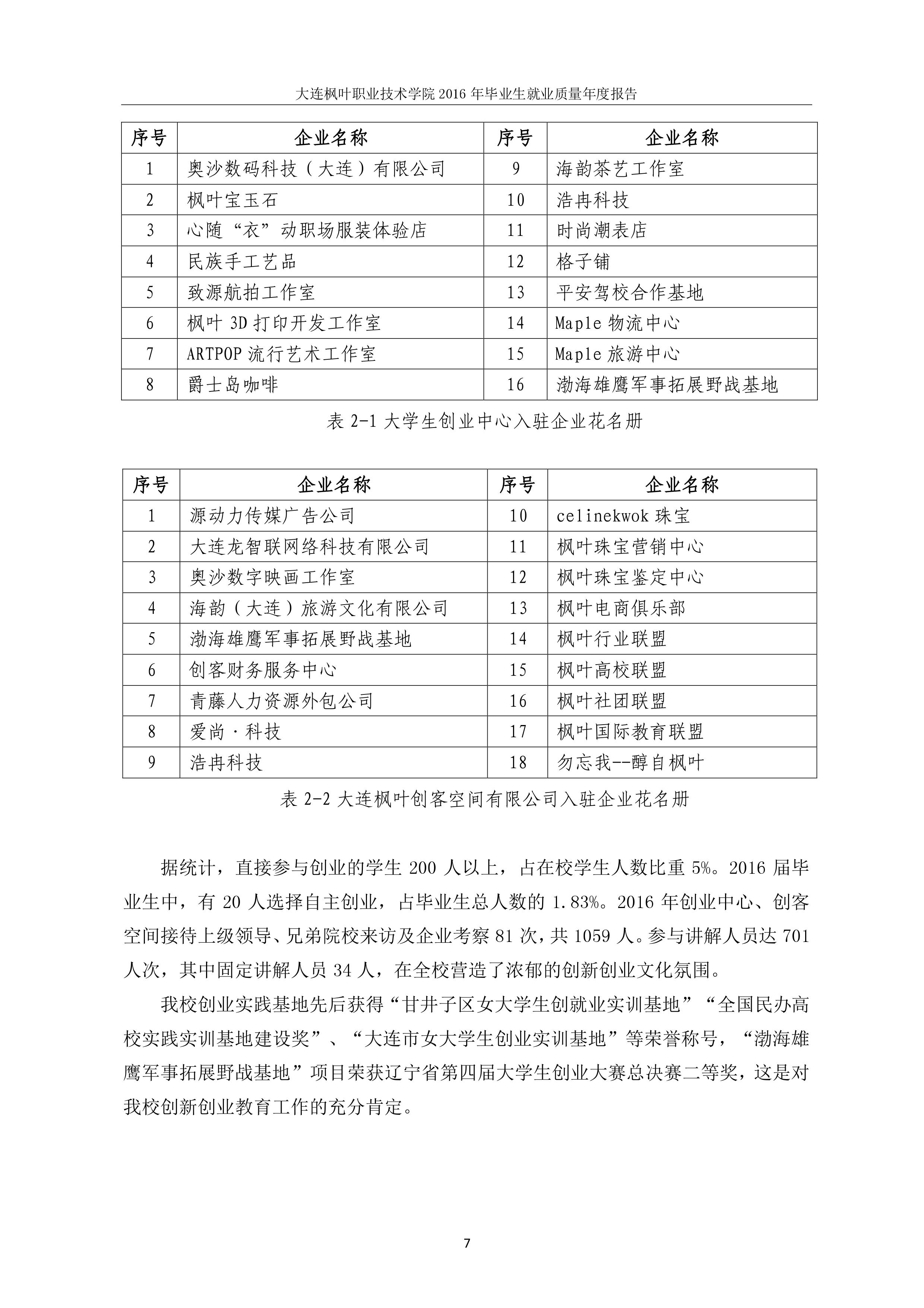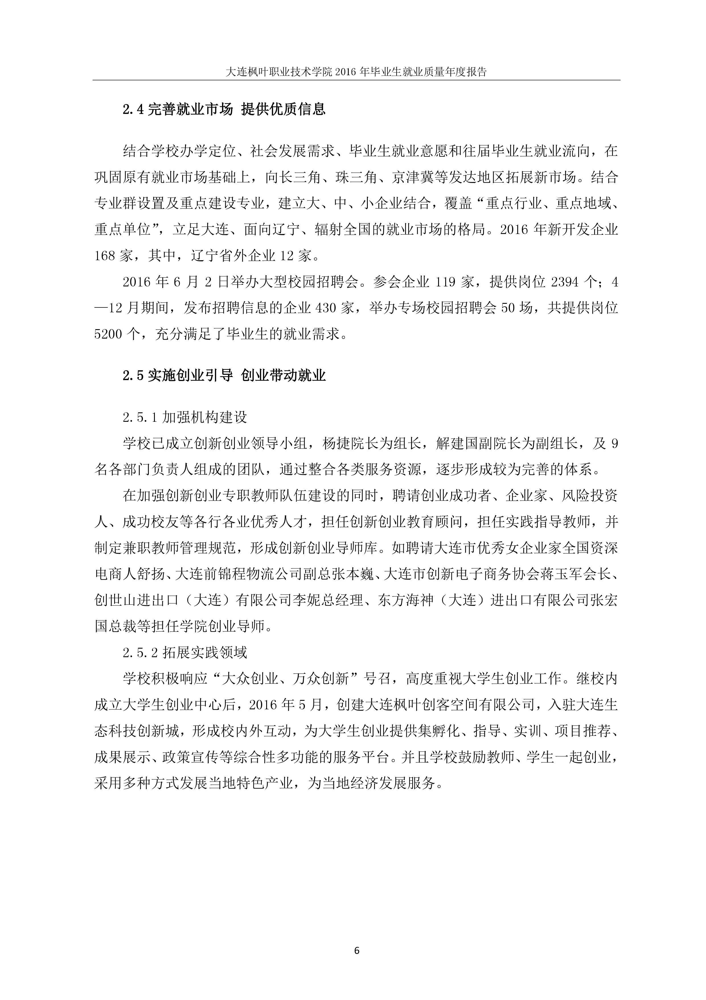 大连枫叶职业技术学院2016年毕业生就业质量年度报告